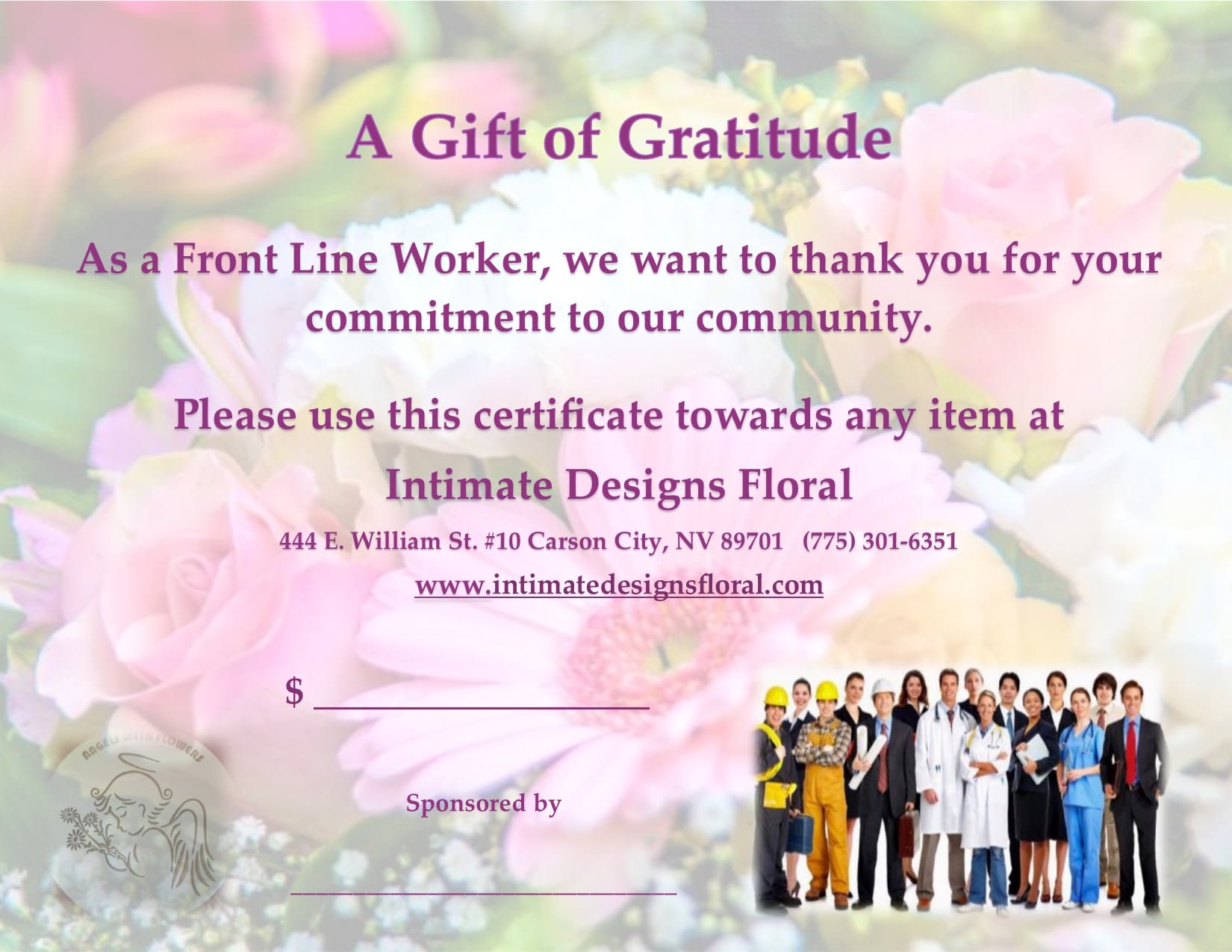 Flowers For Frontliners Certificate In Carson City Nv Intimate Designs Floral Llc